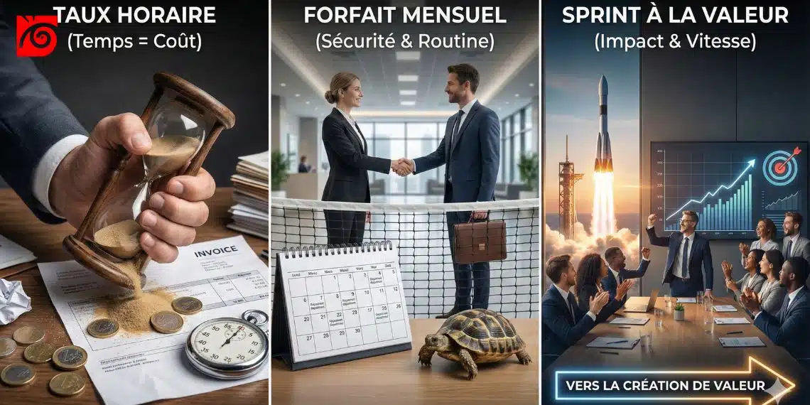 Le piège du « retainer » passif : le forfait mensuel (au mois) offre de la sécurité, mais risque de se transformer en « rente » sans innovation s’il n’est pas piloté par des objectifs stricts.